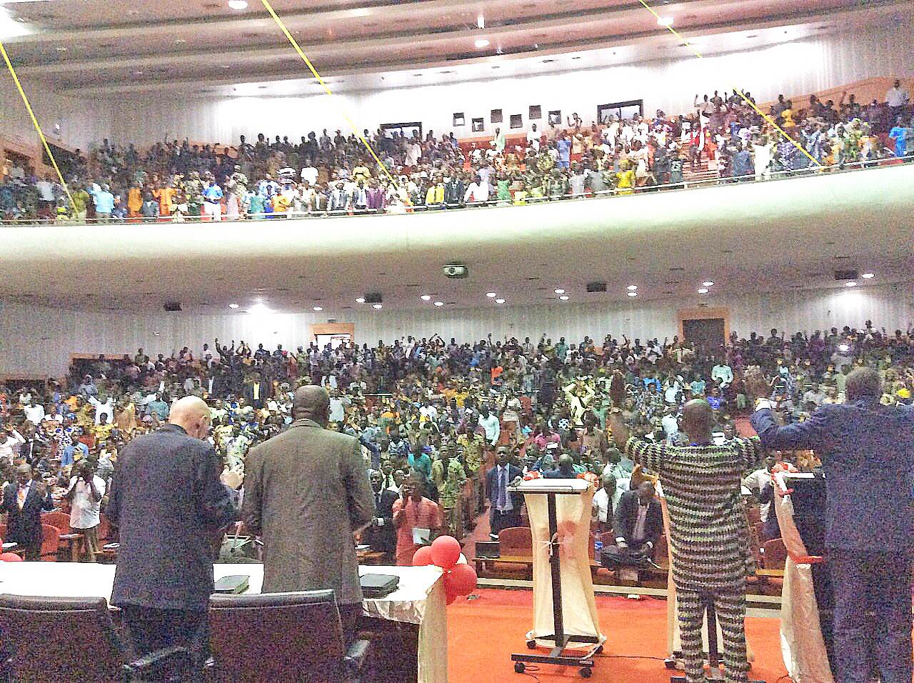 Fotografia ukazuje zhromaždenie 10. 4. 2016 v Cotonou v Benine v Afrike.